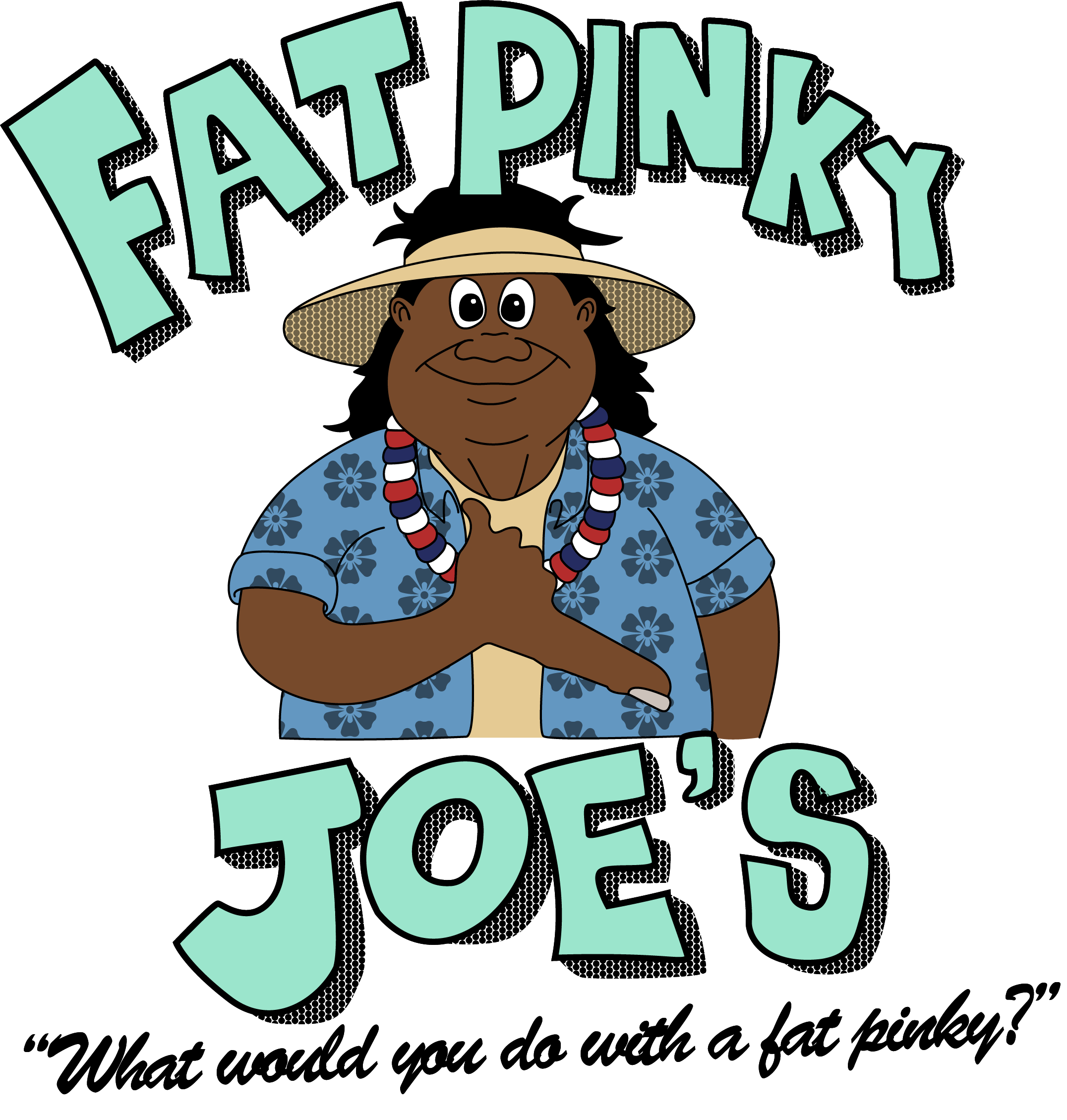 Fat Pinky Joe was stranded on a newly formed island off of Hawaii since childhood. Joe began to adapt to his surroundings in order to survive! In his mutation, Joe grew an unusually large pinky, which, he used to hunt for food. He soon learned to surf on that pinky, all the way to the island of Maui where the natives appropriately named him Fat Pinky Joe!